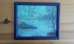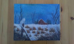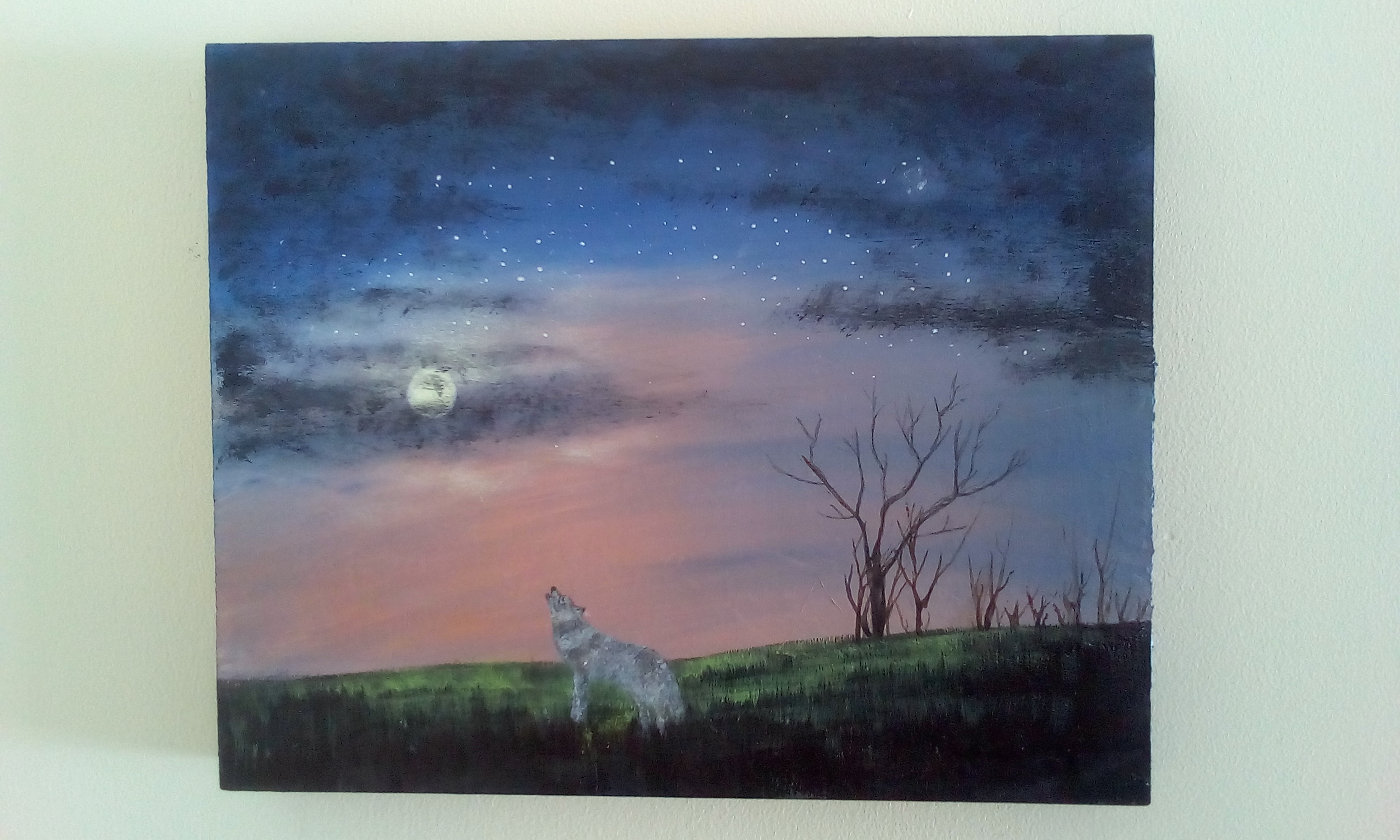 8″x10″ acrylic landscape with wolf howling at moon on ready to hang wood panel